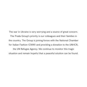 Новини про події в Україні сколихнули світову fashion-індустрію. Першим публічно відреагував публікацією в соцмережах світовий гігант Kering (дочірними компаніями якого є Gucci, Yves Sent Laurent, Bottega Veneta, Alexander McQueen, Balenciaga). Джорджіо Армані 27 лютого провів показ на розпочатому Тижні моди в Мілані в повній тиші.